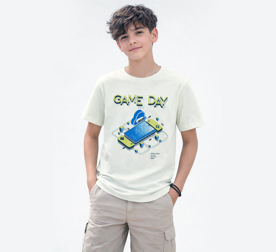Get ready to play with this fun and modern “Game Day” Graphic T-Shirt! Perfect for any young gamer.
