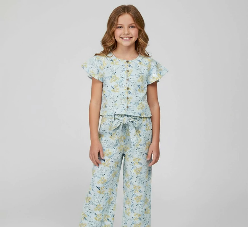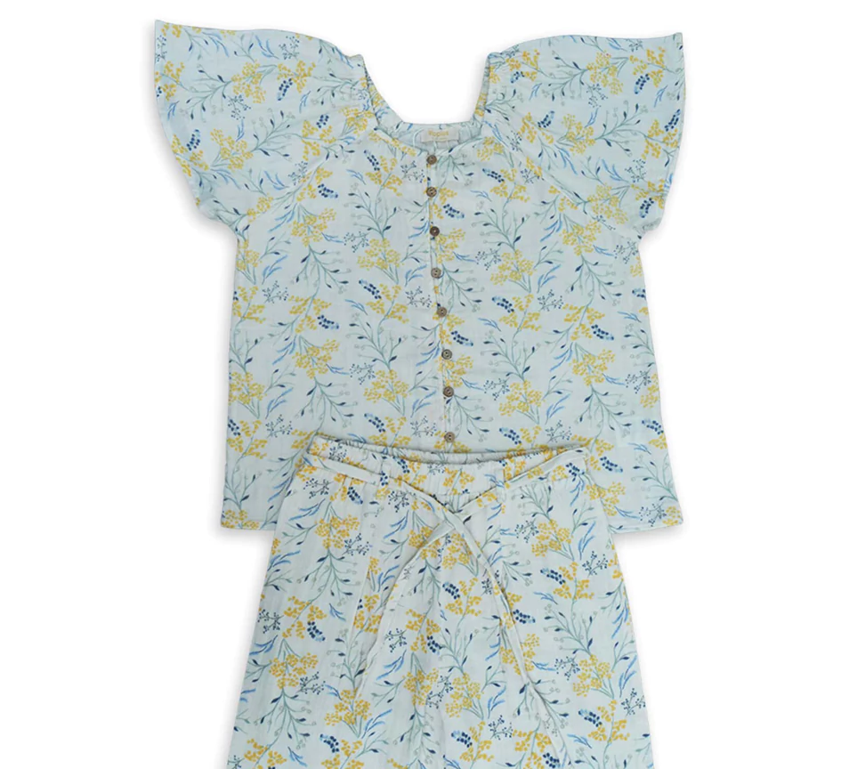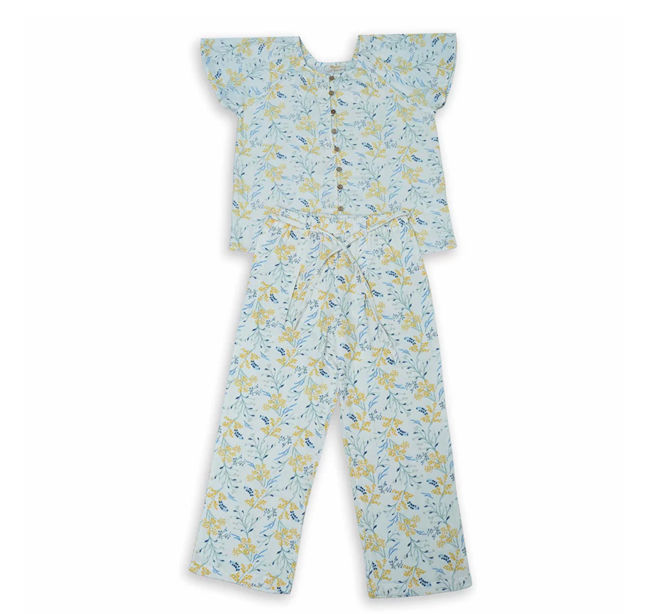 Bring the freshness of a spring meadow into her wardrobe with our Wildflower Meadow Co-Ord Set. This charming two-piece set features a delicate and bright floral print on a soft, light background.