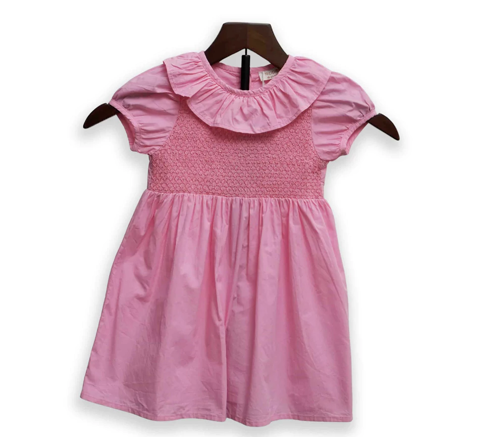 Keep her cool and stylish all season long in this delightful pink smock dress. The comfortable, stretchy smocked chest panel is paired with a lightweight skirt, making it ideal for playdates, picnics, and family gatherings. The dramatic ruffle detail around the neck adds a fun, fashionable touch, while the short cap sleeves offer just the right amount of coverage. Easy to wear and undeniably adorable!