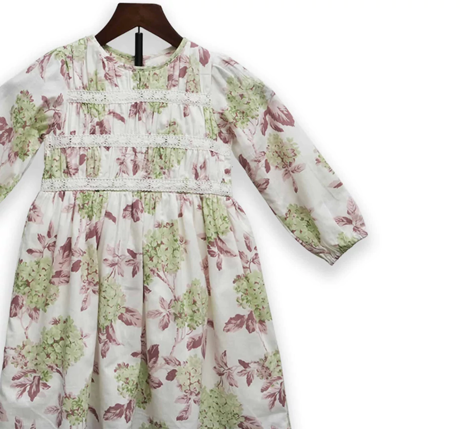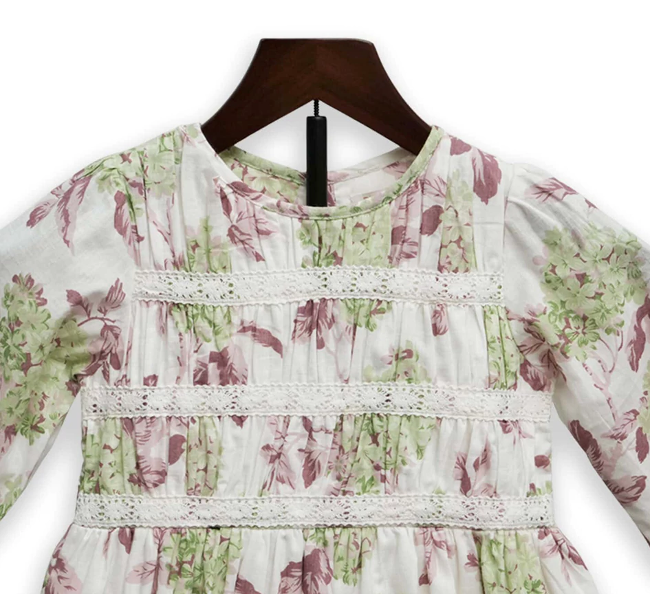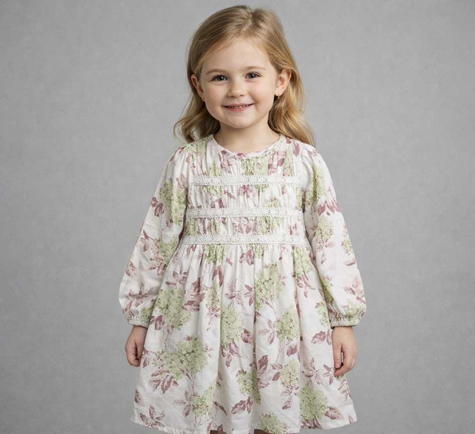 Designed for both charm and comfort, this cotton-blend dress is an essential piece. The elegant smocking across the chest not only adds a beautiful vintage detail but also ensures a flexible, comfortable fit as she plays. The all-over botanical print features a calming color palette. Long, voluminous sleeves keep the look stylish, and the simple round neck makes it easy to slip on and off.