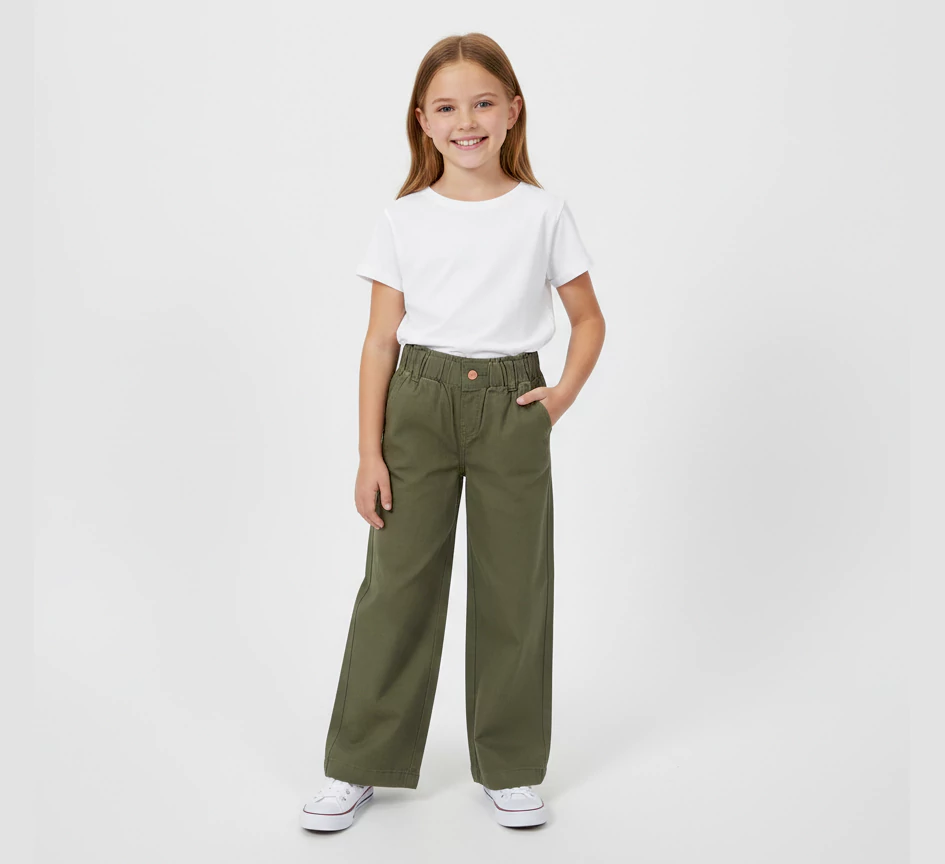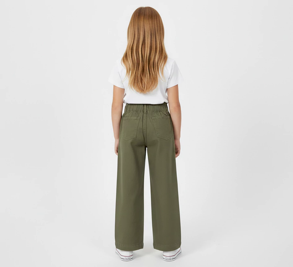These versatile wide-leg pants are designed to combine comfort with everyday style. Made from soft yet durable cotton twill, they offer a relaxed fit that allows easy movement throughout the day. The elasticated waistband with a button detail provides a comfortable, secure fit, while functional side pockets add a practical touch. Finished in a classic olive green shade, these pants are easy to pair with tees, shirts, or sweatshirts for a clean, modern look.
