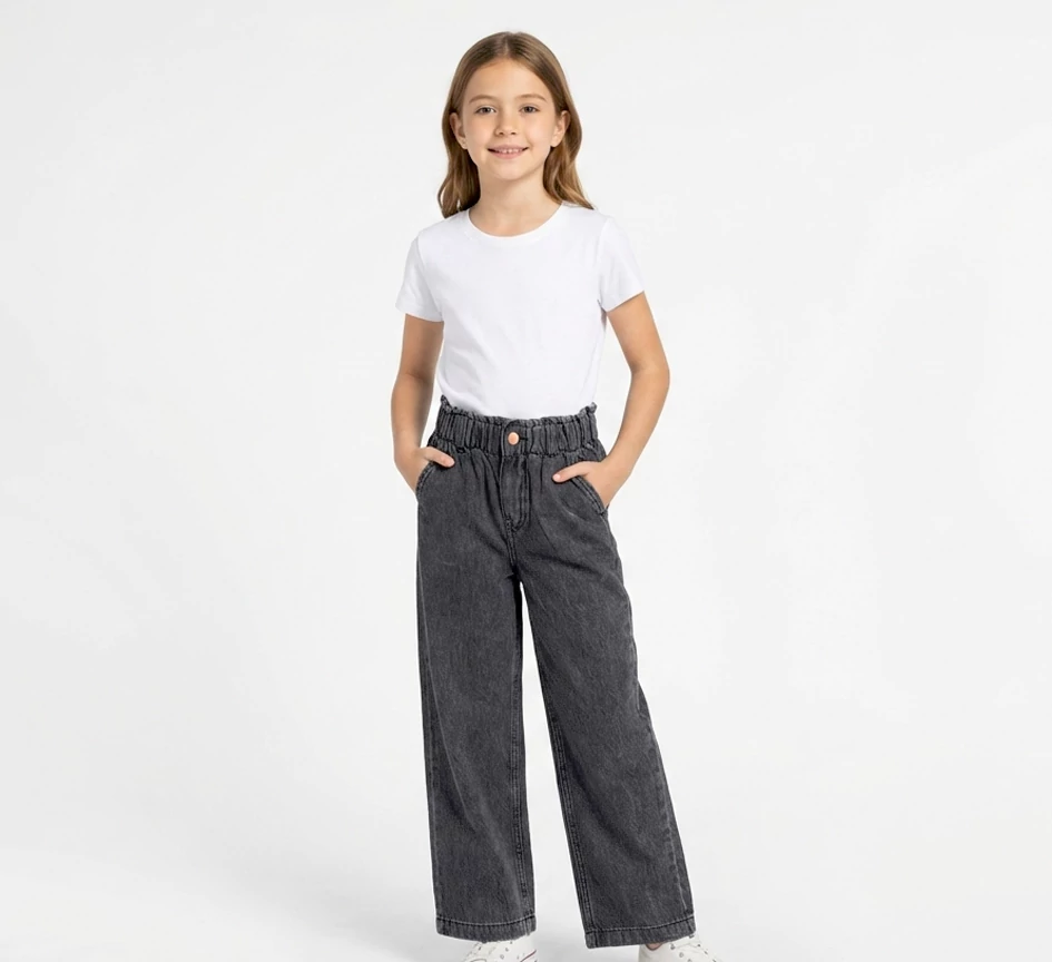 These stylish wide-leg jeans are designed for all-day comfort with a cool, modern look. Crafted from soft, washed denim, they feature a relaxed silhouette that allows easy movement while still looking put-together. The elasticated waistband with a button detail ensures a secure yet flexible fit, making them perfect for everyday wear. Finished with functional side pockets and a versatile dark grey wash, these jeans pair effortlessly with tees, tops, or sweaters for a laid-back yet trendy outfit.