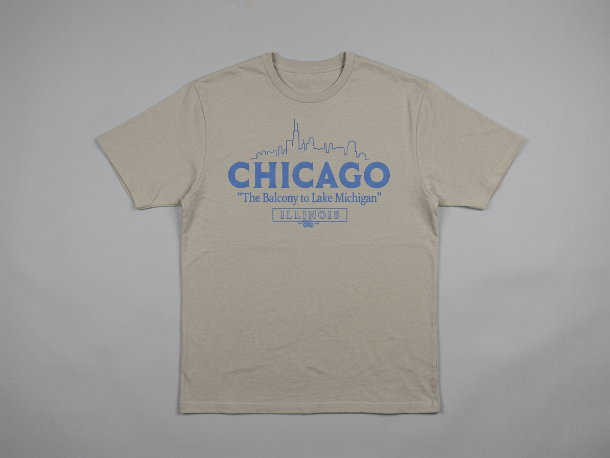 This tee is a love letter to the Windy City, capturing the iconic energy of the Midwest through a clean, retro-inspired lens. Drenched in a warm sand-beige hue, it offers a vintage souvenir aesthetic that feels like a cherished find from a boutique along Michigan Avenue.