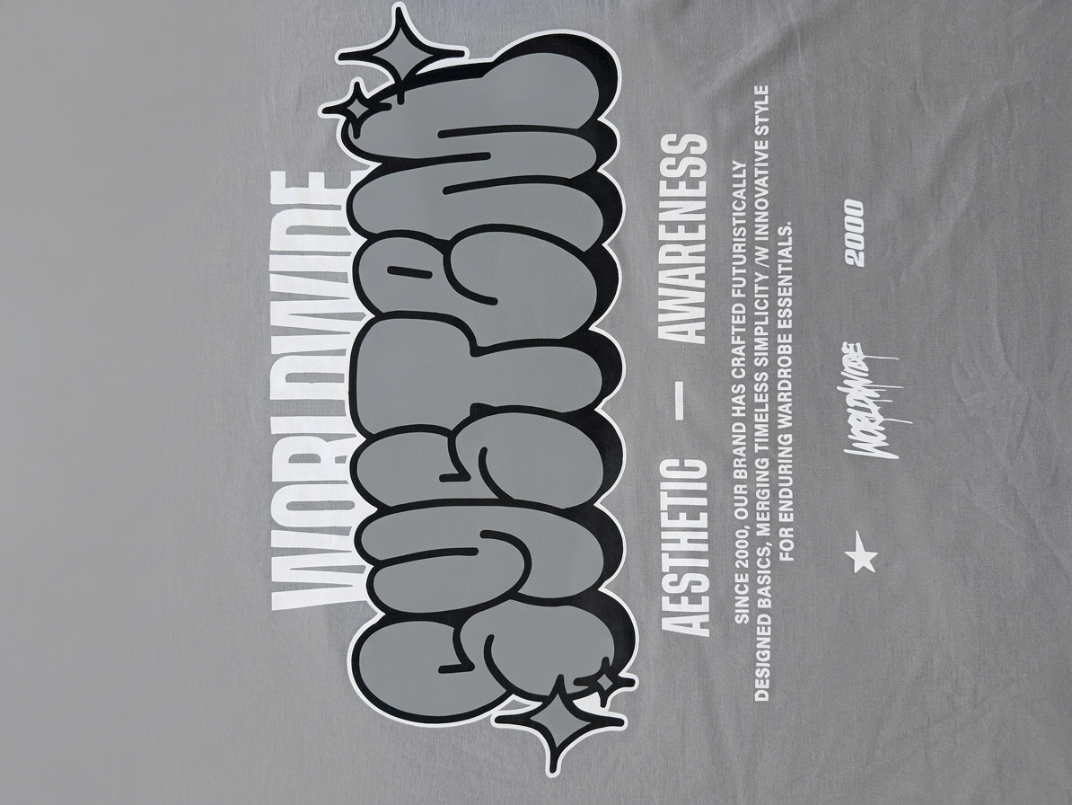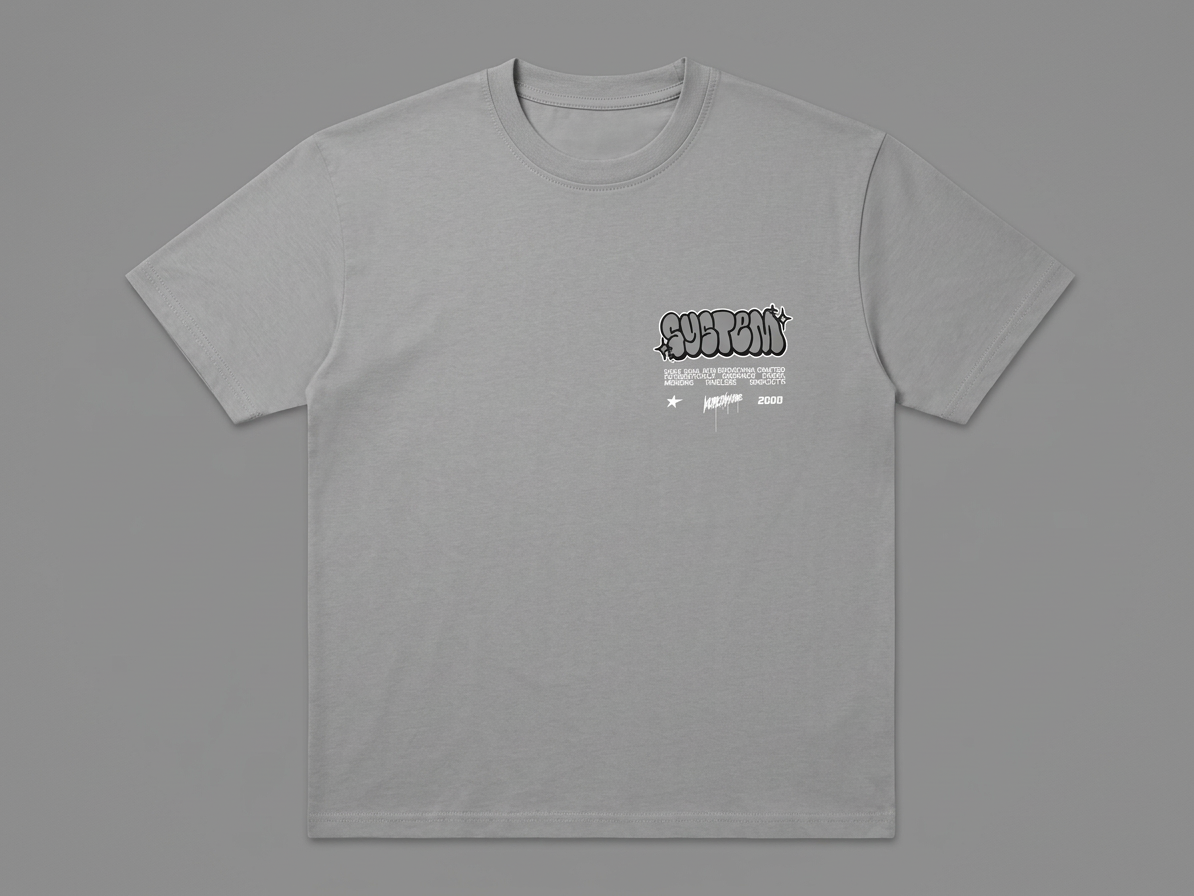 This grey graphic tee keeps it low-key with a small chest print that adds just enough detail without overdoing it. The neutral charcoal-grey shade is a solid base for any outfit, making it a go-to piece whether you’re layering it or wearing it solo.